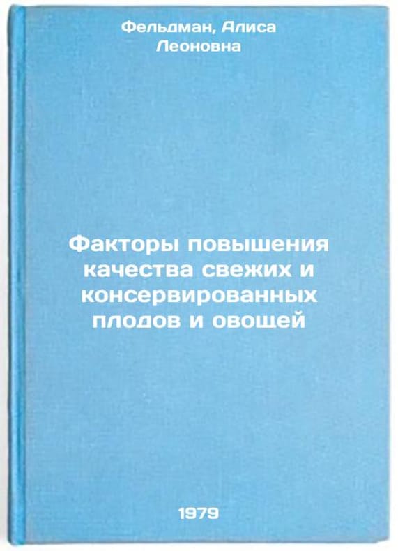 In Russian. Feldman, Alisa Leonovna. Factors for improving the quality of fresh and canned fruits and vegetables. Moscow: Food Industry, 1979 Faktory povysheniya kachestva svezhikh i konservirovannykh plodov i ovoshchey/Improvement factors for fresh and canned fruit and vegetables In Russian. All images are for identification of editions only. Several books of the same edition may be available. Please feel free to request photos of available books. SKU7666961