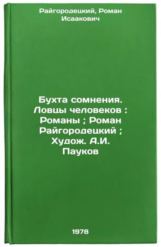 "In Russian. Raigorodetsky, Roman Isaakovich. The Bay of Doubt. Human Catchers: Novels; Roman Raigorodetsky; [Artist A.I. Spikov]. Moscow: Soviet writer, 1978 Bukhta somneniya. Lovtsy chelovekov: Romany; Roman Raygorodetskiy; Khudozh. A.I. Paukov/The Bay of Doubt. The Catchers of Man: Novels; Roman Raigorodetsky; Artist A.I. Spikov In Russian. All images are for identification of editions only. Several books of the same edition may be available. Please feel free to request photos of available books. SKU7667460"