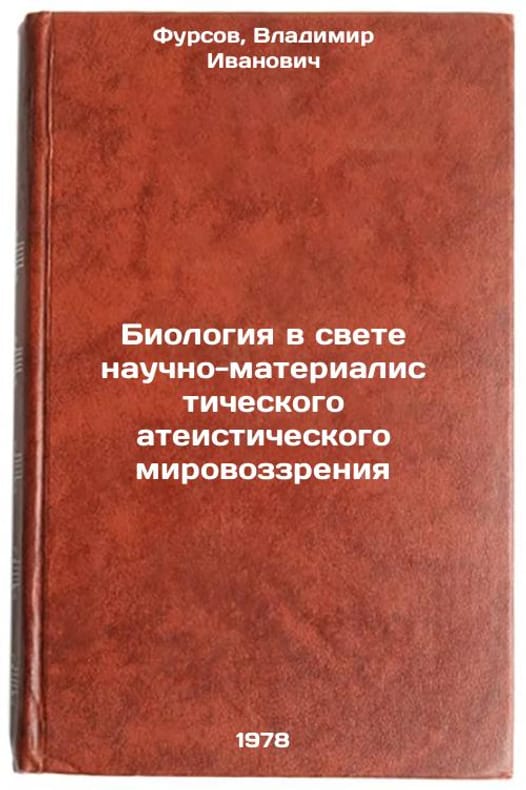 In Russian. Fursov, Vladimir Ivanovich. Biology in the light of a scientific and materialistic atheistic worldview. Almaty: Kazakhstan, 1978 Biologiya v svete nauchno-materialisticheskogo ateisticheskogo mirovozzreniya/Biology in the light of a scientifically materialistic atheistic worldview In Russian. All images are for identification of editions only. Several books of the same edition may be available. Please feel free to request photos of available books. SKU7668380