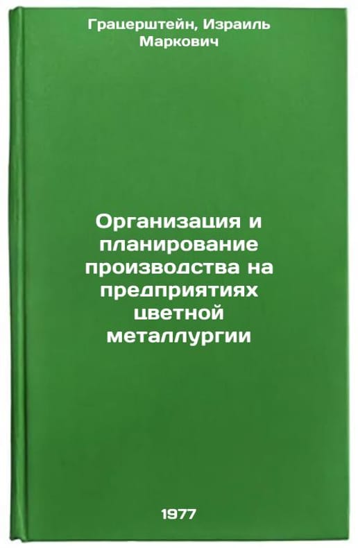 In Russian. Grazerstein, Israel Markovich. Organization and planning of production at non-ferrous metallurgy enterprises. Moscow: Metallurgy, 1977. Organizatsiya i planirovanie proizvodstva na predpriyatiyakh tsvetnoy metallurgii. In Russian /Organization and planning of production in non-ferrous metallurgy . All images are for identification of editions only. Several books of the same edition may be available. Please feel free to request photos of available books. SKU7668466
