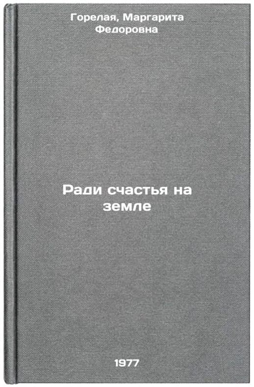 In Russian. Gorelaya, Margarita Fedorovna. For the sake of happiness on earth. Moscow: Sovremennik, 1977. All images are for identification of editions only. Several books of the same edition may be available. Please feel free to request photos of available books. SKU7668579