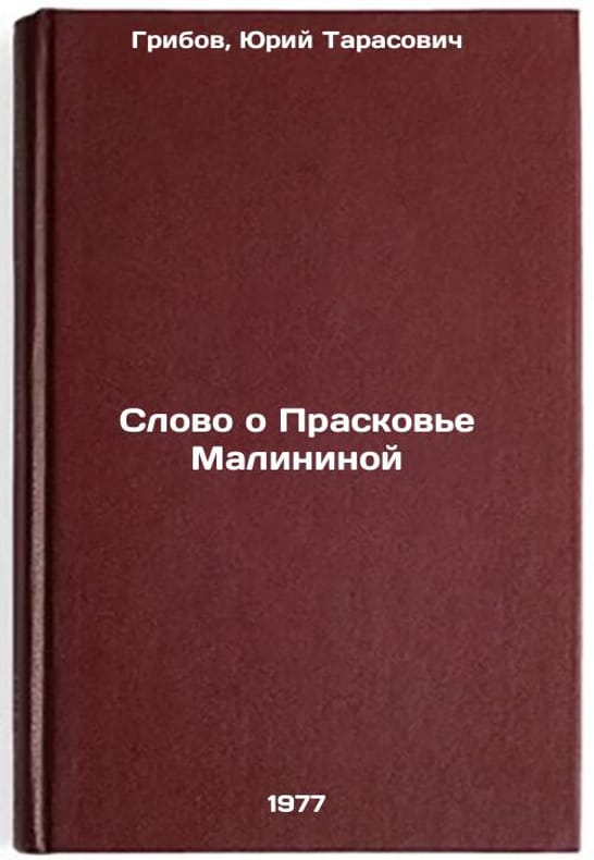 In Russian. Gribov, Yuri Tarasovich. The Word About Praskovye Malinina. Moscow: Little Boy, 1977. All images are for identification of editions only. Several books of the same edition may be available. Please feel free to request photos of available books. SKU7668626