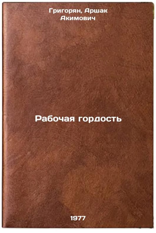 In Russian. Grigoryan, Arshak Akimovich. Working Proud. Ordzhonikidze: Ir, 1977. All images are for identification of editions only. Several books of the same edition may be available. Please feel free to request photos of available books. SKU7668732