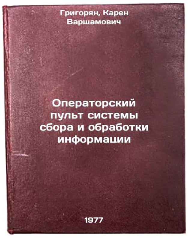 In Russian. Grigoryan, Karen Varshamovich. The operator's console of the information collection and processing system. Yerevan: 1977. Operatorskiy pul't sistemy sbora i obrabotki informatsii. In Russian /Operator's console of the information collection and processing system . All images are for identification of editions only. Several books of the same edition may be available. Please feel free to request photos of available books. SKU7668738
