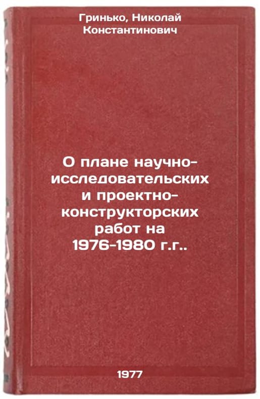 In Russian. Grinko, Nikolai Konstantinovich. On the plan of research and development works for 1976-1980. Moscow: 1977. O plane nauchno-issledovatel'skikh i proektno-konstruktorskikh rabot na 1976-1980 gg. In Russian /On the research and development plan for 1976-1980 . All images are for identification of editions only. Several books of the same edition may be available. Please feel free to request photos of available books. SKU7668821