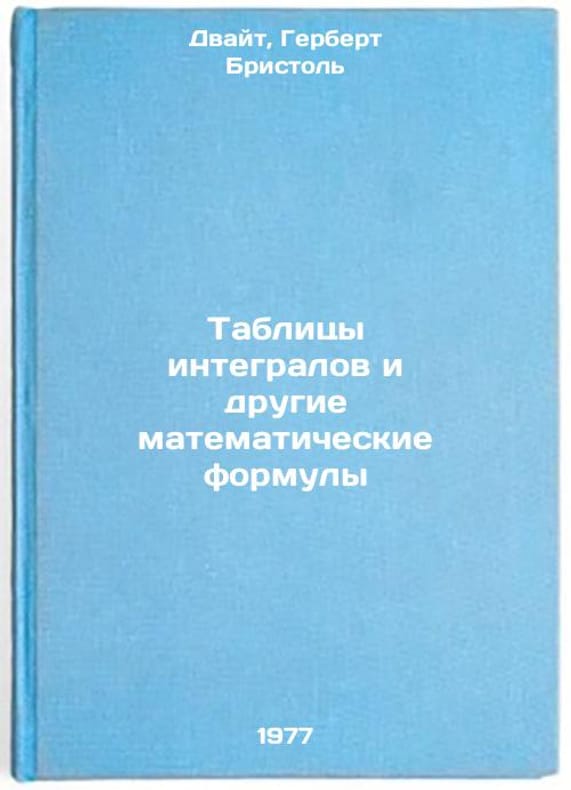 In Russian. Dwight, Herbert of Bristol. Tables of integrals and other mathematical formulae. Moscow: Science, 1977. Tablitsy integralov i drugie matematicheskie formuly. In Russian /Tables of integrals and other mathematical formulae . All images are for identification of editions only. Several books of the same edition may be available. Please feel free to request photos of available books. SKU7669765