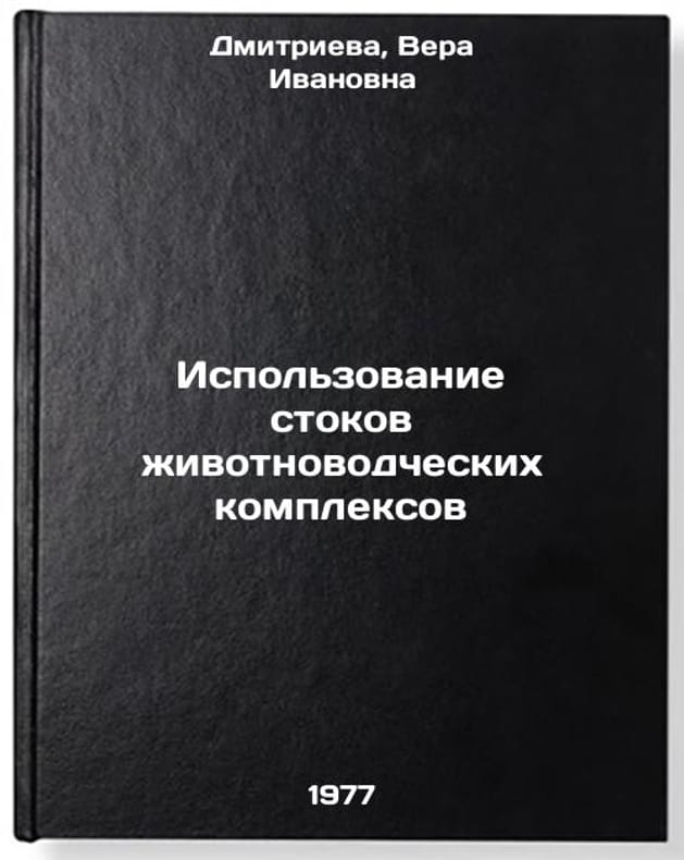 In Russian. Dmitrieva, Vera Ivanovna. Use of wastewater from livestock breeding complexes. Moscow: Rosselkhozhizdat, 1977. Ispol'zovanie stokov zhivotnovodcheskikh kompleksov. In Russian /Use of drainage from livestock farming complexes . All images are for identification of editions only. Several books of the same edition may be available. Please feel free to request photos of available books. SKU7670390