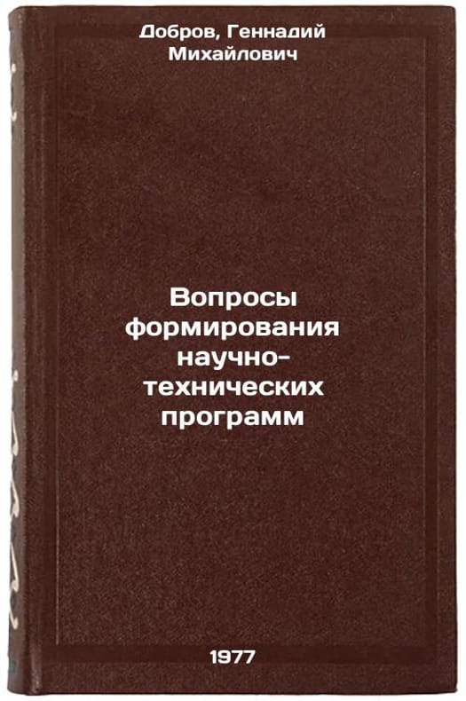In Russian. Dobrov, Gennady Mikhailovich. Issues of Formation of Scientific and Technical Programs. Kyiv: Knowledge of the Ukrainian SSR, 1977. Voprosy formirovaniya nauchno-tekhnicheskikh programm. In Russian /Issues of Science and Technology Program Formation . All images are for identification of editions only. Several books of the same edition may be available. Please feel free to request photos of available books. SKU7670442