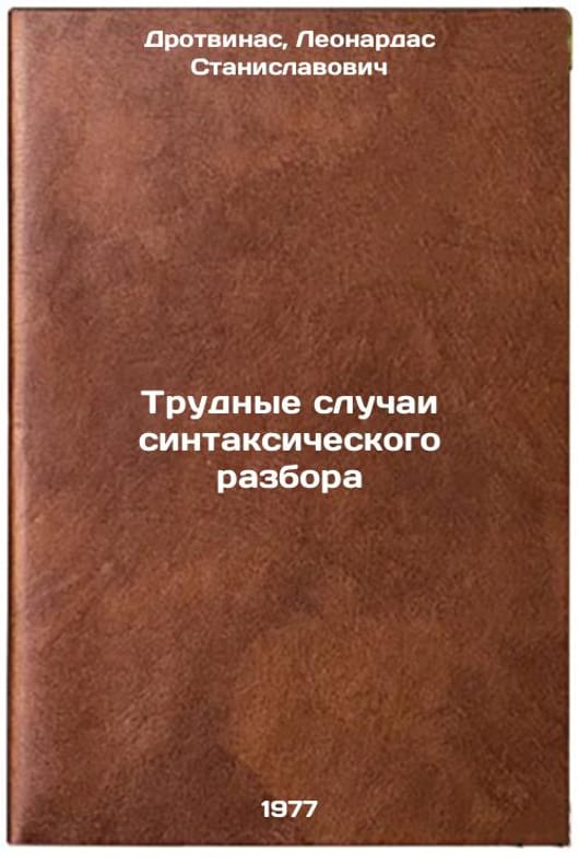 In Russian. Drotvinas, Leonardas Stanislavovich. Difficult cases of syntax parsing. Vilnius: 1977. All images are for identification of editions only. Several books of the same edition may be available. Please feel free to request photos of available books. SKU7670918