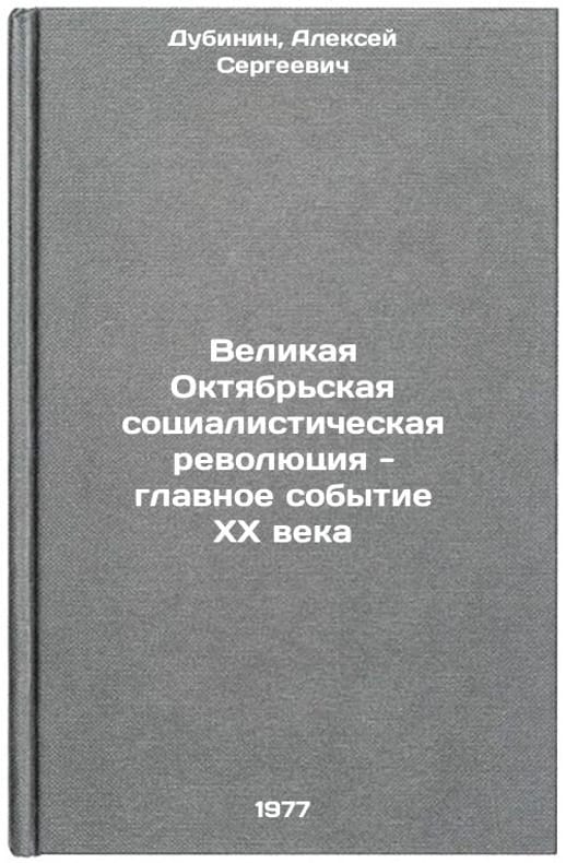 In Russian. Dubinin, Alexey Sergeevich. The Great October Socialist Revolution - the main event of the twentieth century. Moscow: Knowledge, 1977. Velikaya Oktyabr'skaya sotsialisticheskaya revolyutsiya - glavnoe sobytie XX veka. In Russian /The Great October Socialist Revolution - the main event of the twentieth century . All images are for identification of editions only. Several books of the same edition may be available. Please feel free to request photos of available books. SKU7670970