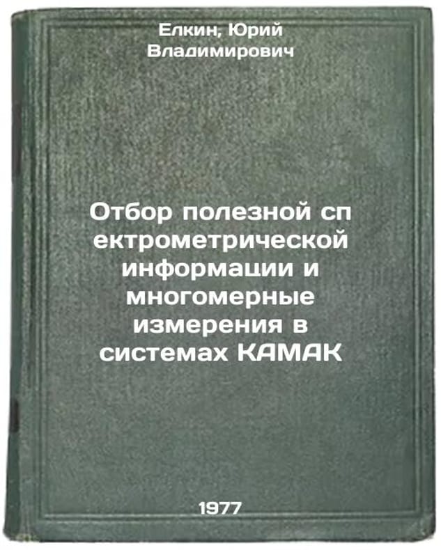 In Russian. Elkin, Yuri Vladimirovich. Selection of useful spectrometric information and multidimensional measurements in KAMAK systems. Leningrad: 1977. Otbor poleznoy spektrometricheskoy informatsii i mnogomernye izmereniya v sistemakh KAMAK. In Russian /Selection of useful spectrometric information and multidimensional measurements in CAMAC systems . All images are for identification of editions only. Several books of the same edition may be available. Please feel free to request photos of available books. SKU7671468
