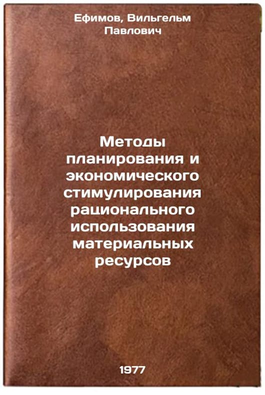 In Russian. Efimov, Wilhelm Pavlovich. Methods of Planning and Economic Stimulation of Rational Use of Material Resources. Moscow: 1977. Metody planirovaniya i ekonomicheskogo stimulirovaniya ratsional'nogo ispol'zovaniya material'nykh resursov. In Russian /Methods of Planning and Economic Incentives for Material Management . All images are for identification of editions only. Several books of the same edition may be available. Please feel free to request photos of available books. SKU7671750
