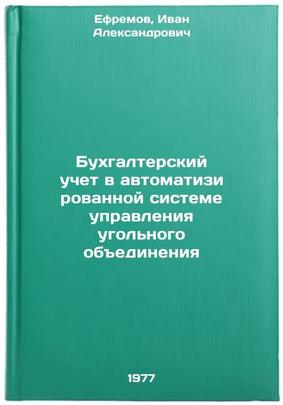 In Russian. Efremov, Ivan Alexandrovich. Accounting in the Automated Control System of the Coal Association. Moscow: Nedra, 1977. Bukhgalterskiy uchet v avtomatizirovannoy sisteme upravleniya ugol'nogo obedineniya. In Russian /Accounting in the Automated Control System of the Coal Association . All images are for identification of editions only. Several books of the same edition may be available. Please feel free to request photos of available books. SKU7671777