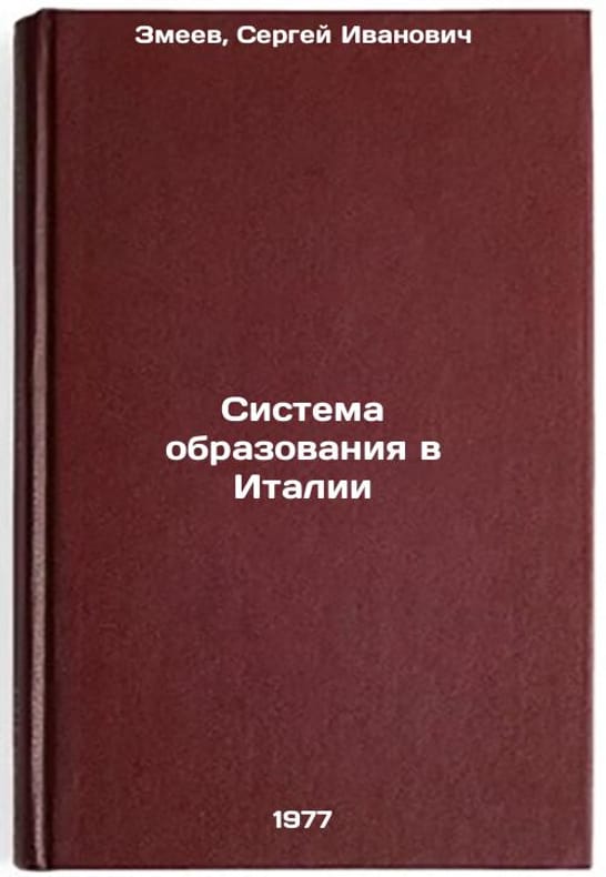 In Russian. Zmeev, Sergey Ivanovich. The Italian Education System. Moscow: Scientific Information Department. NIIEVSh, 1977. All images are for identification of editions only. Several books of the same edition may be available. Please feel free to request photos of available books. SKU7672933