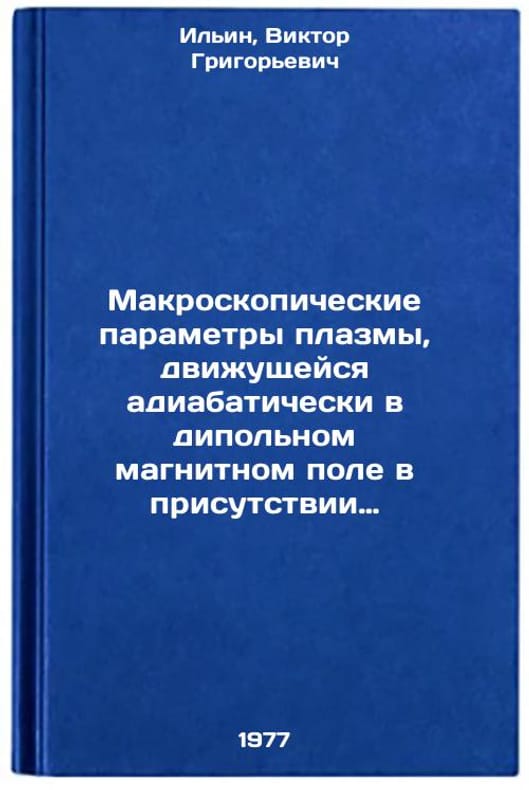 In Russian. Ilyin, Viktor Grigorievich. Macroscopic parameters of plasma moving adiabatically in a dipole magnetic field in the presence of a longitudinal electrostatic field. Moscow: 1977. Makroskopicheskie parametry plazmy, dvizhushcheysya adiabaticheski v dipol'nom magnitnom pole v prisutstvii prodol'nogo elektrostaticheskogo polya. In Russian /Macroscopic parameters of plasma moving adiabatically in a dipole magnetic field in the presence of a longitudinal electrostatic field . All images are for identification of editions only. Several books of the same edition may be available. Please feel free to request photos of available books. SKU7673631