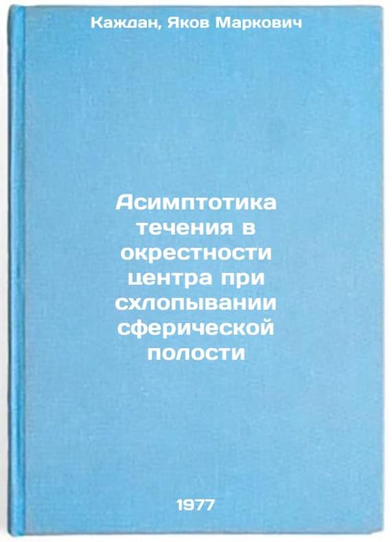 In Russian. Kazhdan, Yakov Markovich. The asymptotics of flow in the vicinity of the center when the spherical cavity collapses. Moscow: 1977. Asimptotika techeniya v okrestnosti tsentra pri skhlopyvanii sfericheskoy polosti. In Russian /Asymptotics of flow in the vicinity of the center when the spherical cavity collapses . All images are for identification of editions only. Several books of the same edition may be available. Please feel free to request photos of available books. SKU7674665