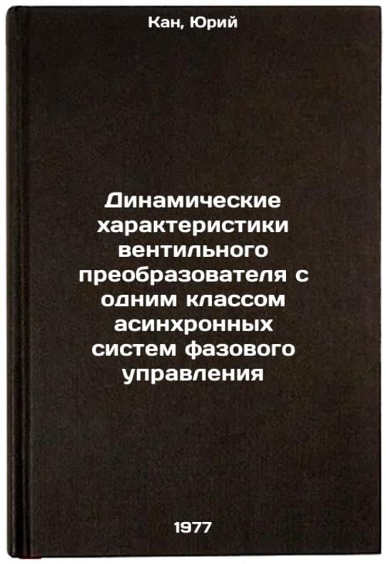 In Russian. Kan, Yuri. Dynamic characteristics of a valve converter with one class of asynchronous phase control systems. Leningrad: 1977. Dinamicheskie kharakteristiki ventil'nogo preobrazovatelya s odnim klassom asinkhronnykh sistem fazovogo upravleniya. In Russian /Dynamic characteristics of a valve converter with one class of asynchronous phase control systems . All images are for identification of editions only. Several books of the same edition may be available. Please feel free to request photos of available books. SKU7674913