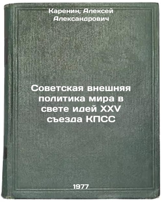 In Russian. Karenin, Alexey Alexandrovich. Soviet foreign policy in the light of the ideas of the XXV Congress of the CPSU. Moscow: Politizdat, 1977. Sovetskaya vneshnyaya politika mira v svete idey XXV sezda KPSS. In Russian /Soviet Foreign Policy in the Light of the Ideas of the 25th Congress of the CPSU . All images are for identification of editions only. Several books of the same edition may be available. Please feel free to request photos of available books. SKU7675113