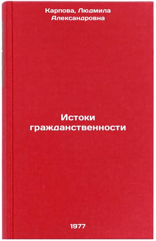 In Russian. Karpova, Lyudmila Alexandrovna. The Origins of Citizenship. Kyiv: Knowledge of the Ukrainian SSR, 1977. All images are for identification of editions only. Several books of the same edition may be available. Please feel free to request photos of available books. SKU7675207