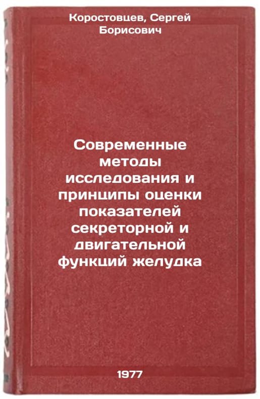 In Russian. Korostovtsev, Sergey Borisovich. Modern methods of research and principles of estimation of indicators of gastric secretory and motor functions. Leningrad: 1977. Sovremennye metody issledovaniya i printsipy otsenki pokazateley sekretornoy i dvigatel'noy funktsiy zheludka. In Russian /Current Research Methods and Principles for Evaluating Stomach Secretory and Motor Functions . All images are for identification of editions only. Several books of the same edition may be available. Please feel free to request photos of available books. SKU7675953