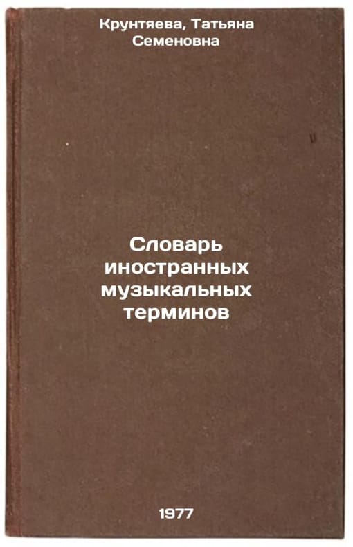 In Russian. Kruntyaeva, Tatyana Semenovna. Dictionary of Foreign Musical Terms. Leningrad: Music. Leningrad Branch, 1977. Slovar' inostrannykh muzykal'nykh terminov. In Russian /Dictionary of Foreign Music Terms . All images are for identification of editions only. Several books of the same edition may be available. Please feel free to request photos of available books. SKU7678525