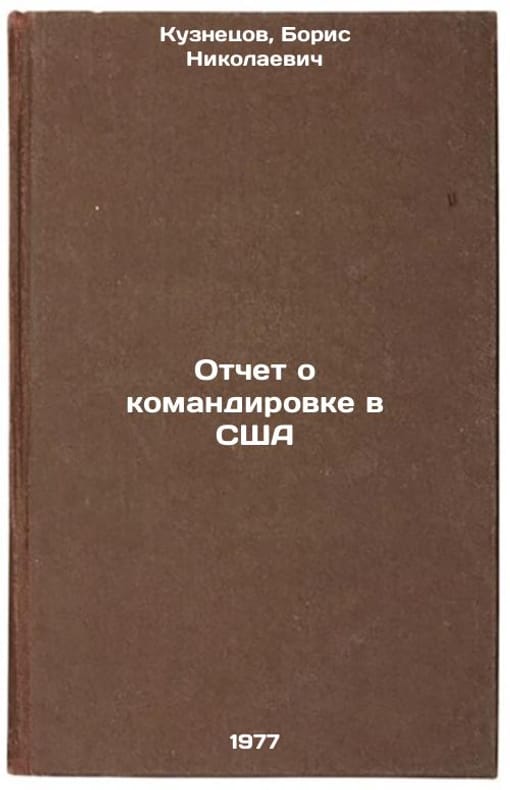In Russian. Kuznetsov, Boris Nikolaevich. Report on a mission to the USA. Moscow: 1977. Otchet o komandirovke v SShA. In Russian /Report on a mission to the United States . All images are for identification of editions only. Several books of the same edition may be available. Please feel free to request photos of available books. SKU7678795