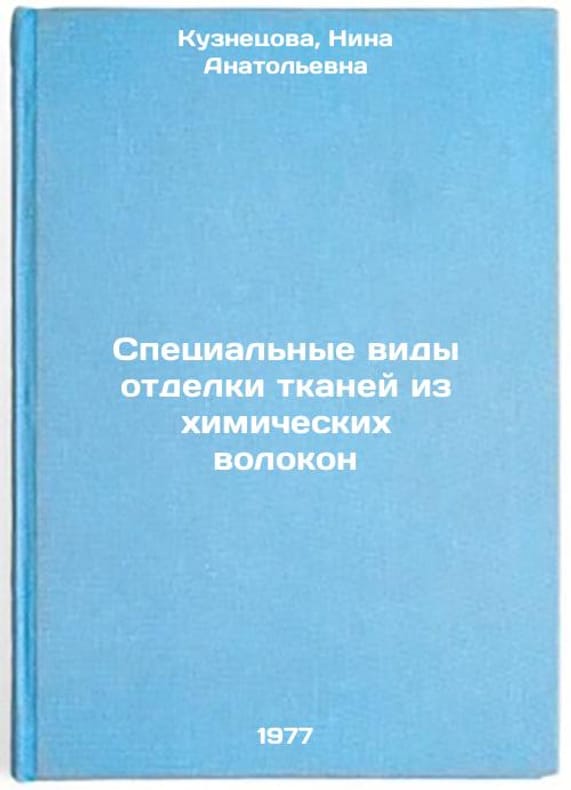 In Russian. Kuznetsova, Nina Anatolyevna. Special kinds of finishing of fabrics from chemical fibres. Moscow: Light Industry, 1977. Spetsial'nye vidy otdelki tkaney iz khimicheskikh volokon. In Russian /Special finishes of chemical fibres fabrics . All images are for identification of editions only. Several books of the same edition may be available. Please feel free to request photos of available books. SKU7678841
