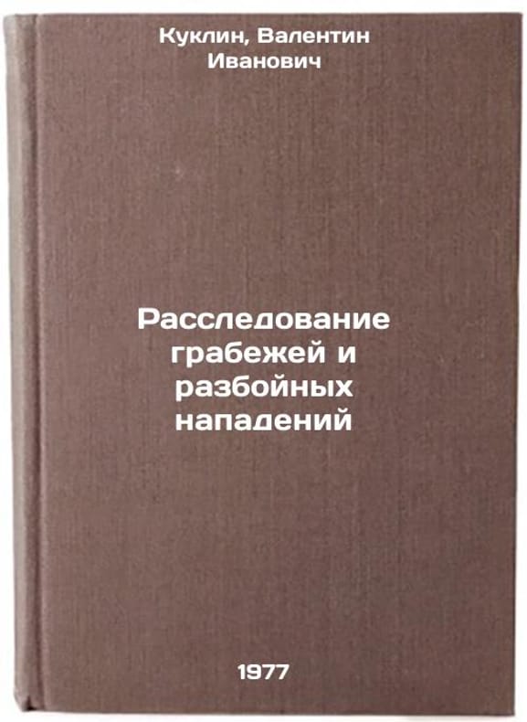 In Russian. Kuklin, Valentin Ivanovich. Investigation of looting and robbery. Saratov: Publishing House of Saratov un-ta, 1977. Rassledovanie grabezhey i razboynykh napadeniy. In Russian /Investigation of looting and robbery . All images are for identification of editions only. Several books of the same edition may be available. Please feel free to request photos of available books. SKU7678933