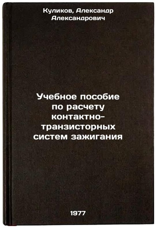 In Russian. Kulikov, Alexander Alexandrovich. Training Manual for Calculating Contact-Transistor Ignition Systems. Moscow: 1977. Uchebnoe posobie po raschetu kontaktno-tranzistornykh sistem zazhiganiya. In Russian /Training Manual for Calculating Contact Transistor Ignition Systems . All images are for identification of editions only. Several books of the same edition may be available. Please feel free to request photos of available books. SKU7679001