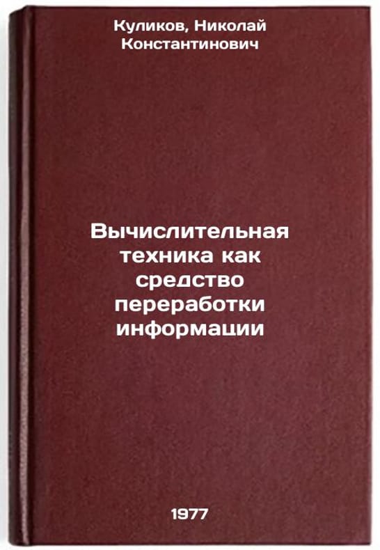 In Russian. Kulikov, Nikolai Konstantinovich. Computing as a Means of Information Processing. Moscow: 1977. Vychislitel'naya tekhnika kak sredstvo pererabotki informatsii. In Russian /Computing as a means of processing information . All images are for identification of editions only. Several books of the same edition may be available. Please feel free to request photos of available books. SKU7679016