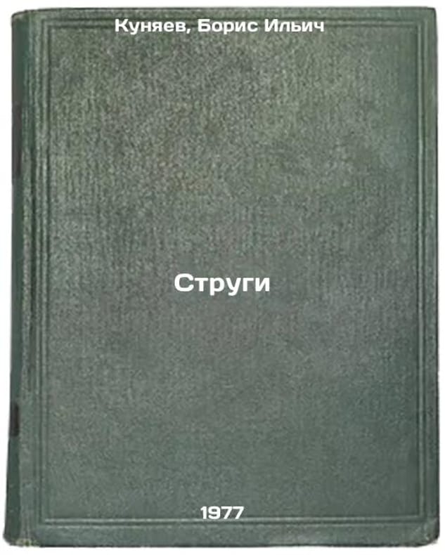 In Russian. Kunyaev, Boris Ilyich. Strugi. Riga: Liesma, 1977. All images are for identification of editions only. Several books of the same edition may be available. Please feel free to request photos of available books. SKU7679119
