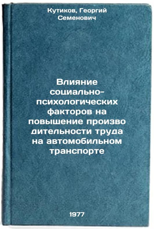 In Russian. Kutikov, Georgy Semenovich. Influence of Social and Psychological Factors on Increasing Labor Productivity in Road Transport. Moscow: 1977. Vliyanie sotsial'no-psikhologicheskikh faktorov na povyshenie proizvoditel'nosti truda na avtomobil'nom transporte. In Russian /Influence of Socio-Psychological Factors on Productivity in Road Transport . All images are for identification of editions only. Several books of the same edition may be available. Please feel free to request photos of available books. SKU7679309