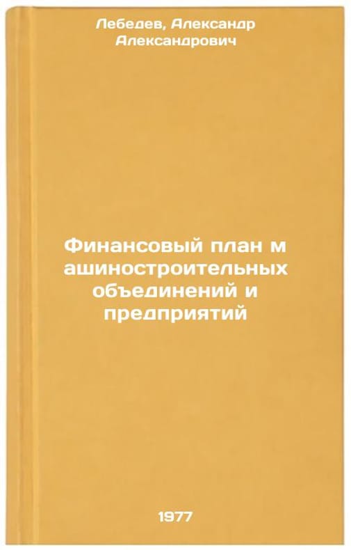 In Russian. Lebedev, Alexander Alexandrovich. Financial plan of machine-building associations and enterprises. Moscow: TsINTIhimneftemash, 1977. Finansovyy plan mashinostroitel'nykh obedineniy i predpriyatiy. In Russian /Financial Plan for Engineering Associations and Enterprises . All images are for identification of editions only. Several books of the same edition may be available. Please feel free to request photos of available books. SKU7679737