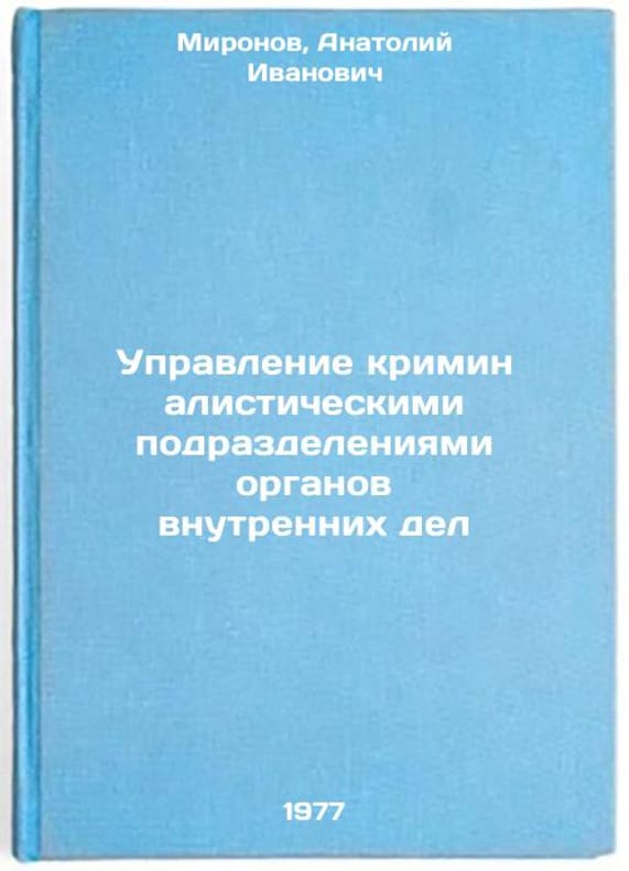 In Russian. Mironov, Anatoly Ivanovich. Management of Criminal Subdivisions of Internal Affairs Bodies. Moscow: 1977. Upravlenie kriminalisticheskimi podrazdeleniyami organov vnutrennikh del. In Russian /Management of Forensics Units of Internal Affairs Bodies . All images are for identification of editions only. Several books of the same edition may be available. Please feel free to request photos of available books. SKU7681727