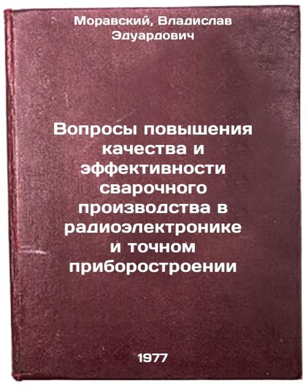 In Russian. Moravsky, Vladislav Eduardovich. Issues of improving the quality and efficiency of welding production in radio electronics and precision instrumentation. Kyiv: Znanie JSC of the Ukrainian SSR, 1977. Voprosy povysheniya kachestva i effektivnosti svarochnogo proizvodstva v radioelektronike i tochnom priborostroenii. In Russian /Issues of improving the quality and efficiency of welding production in radio electronics and precision instrumentation . All images are for identification of editions only. Several books of the same edition may be available. Please feel free to request photos of available books. SKU7681975
