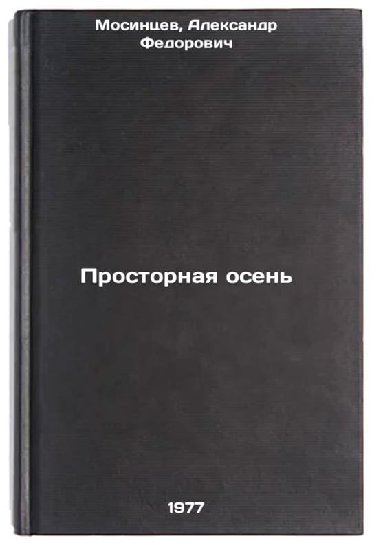 In Russian. Mosintsev, Alexander Fedorovich. A Spacious Autumn. Stavropol: Book of Editions, 1977. All images are for identification of editions only. Several books of the same edition may be available. Please feel free to request photos of available books. SKU7682106