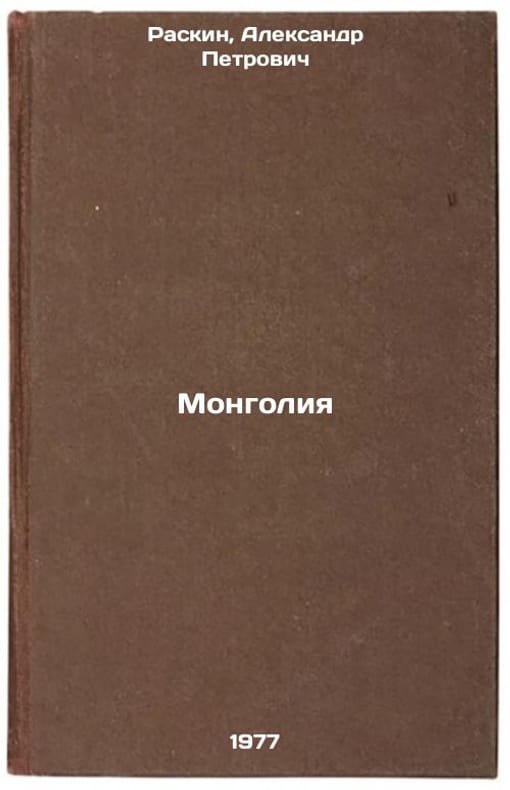 In Russian. Raskin, Alexander Petrovich. Mongolia. Moscow: The Book, 1977. All images are for identification of editions only. Several books of the same edition may be available. Please feel free to request photos of available books. SKU7683193