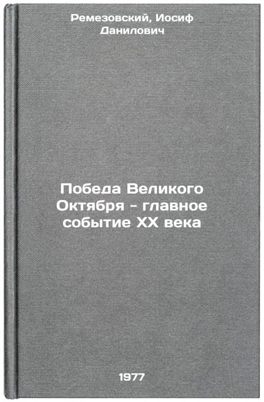 In Russian. Remezovsky, Joseph Danilovich. Victory of the Great October is the main event of the twentieth century. Kyiv: 1977. Pobeda Velikogo Oktyabrya - glavnoe sobytie XX veka. In Russian /The victory of the Great October is the main event of the twentieth century . All images are for identification of editions only. Several books of the same edition may be available. Please feel free to request photos of available books. SKU7683807