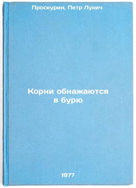 In Russian. Proskurin, Petr Lukich. Roots are exposed in a storm. Moscow: Profizdat, 1977. All images are for identification of editions only. Several books of the same edition may be available. Please feel free to request photos of available books. SKU7684225