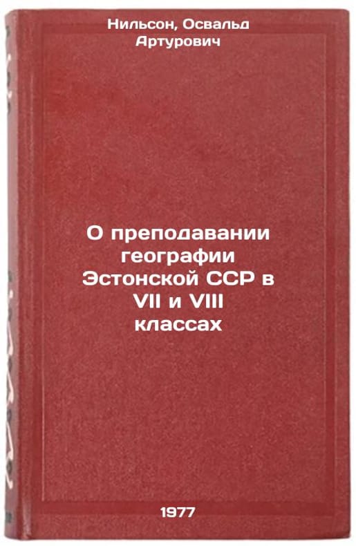 In Russian. Nilson, Oswald Arturovich. On the teaching of geography of the Estonian SSR in the 7th and 8th grades. Tallinn: MP of the ESSR, 1977. O prepodavanii geografii Estonskoy SSR v VII i VIII klassakh. In Russian /On the Teaching of Geography in the 7th and 8th Grades of the Estonian SSR . All images are for identification of editions only. Several books of the same edition may be available. Please feel free to request photos of available books. SKU7685304