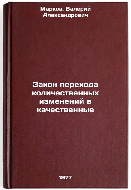 In Russian. Markov, Valery Alexandrovich. The Law of Transition from Qualitative to Qualitative Changes. Riga: 1977. Zakon perekhoda kolichestvennykh izmeneniy v kachestvennye. In Russian /The Law of Qualitative Change . All images are for identification of editions only. Several books of the same edition may be available. Please feel free to request photos of available books. SKU7686087