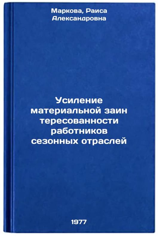 In Russian. Markova, Raisa Alexandrovna. Strengthening the Material Interest of Workers in Seasonal Industries. Moscow: Economics, 1977. Usilenie material'noy zainteresovannosti rabotnikov sezonnykh otrasley. In Russian /Enhancing the Material Interest of Workers in Seasonal Industries . All images are for identification of editions only. Several books of the same edition may be available. Please feel free to request photos of available books. SKU7686099