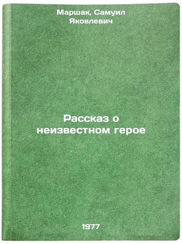In Russian. Marshak, Samuil Yakovlevich. The Story of an Unknown Hero. Moscow: Det. lit., 1977. All images are for identification of editions only. Several books of the same edition may be available. Please feel free to request photos of available books. SKU7686186