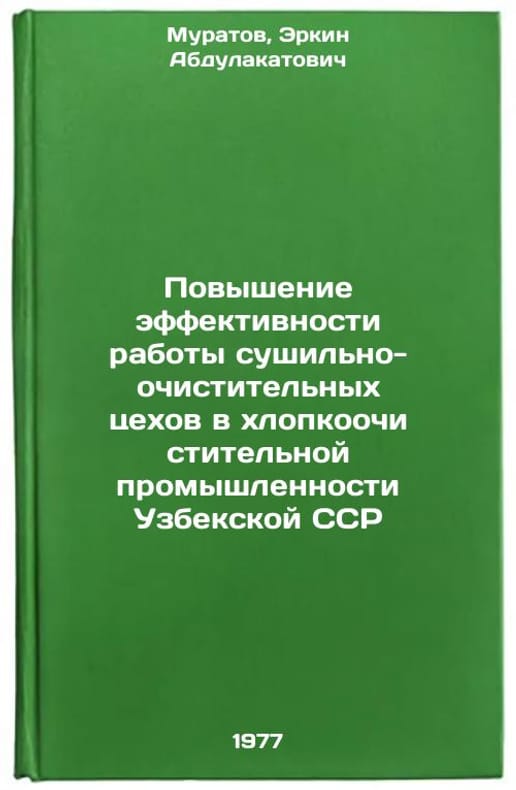 In Russian. Muratov, Erkin Abdulakatovich. Improving the Efficiency of Drying and Cleaning Workshops in the Cotton Cleaning Industry of the Uzbek SSR. Tashkent: UzNINTI, 1977. Povyshenie effektivnosti raboty sushil'no-ochistitel'nykh tsekhov v khlopkoochistitel'noy promyshlennosti Uzbekskoy SSR. In Russian /Improving the Efficiency of Drying and Cleaning Workshops in the Cotton Cleaning Industry of the Uzbek SSR . All images are for identification of editions only. Several books of the same edition may be available. Please feel free to request photos of available books. SKU7686458