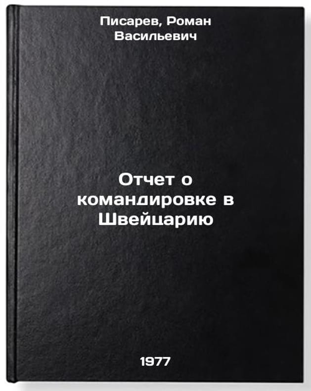In Russian. Pisarev, Roman Vasilievich. Report on mission to Switzerland. Moscow: 1977. Otchet o komandirovke v Shveytsariyu. In Russian /Report on a mission to Switzerland . All images are for identification of editions only. Several books of the same edition may be available. Please feel free to request photos of available books. SKU7686789
