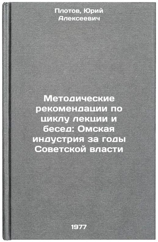 In Russian. Plotov, Yuri Alekseevich. Methodological recommendations for a series of lectures and talks: Omsk industry during the years of Soviet power. Omsk: 1977. Metodicheskie rekomendatsii po tsiklu lektsii i besed: Omskaya industriya za gody Sovetskoy vlasti. In Russian /Methodological recommendations for the cycle of lectures and talks: Omsk industry during the years of Soviet power . All images are for identification of editions only. Several books of the same edition may be available. Please feel free to request photos of available books. SKU7686989