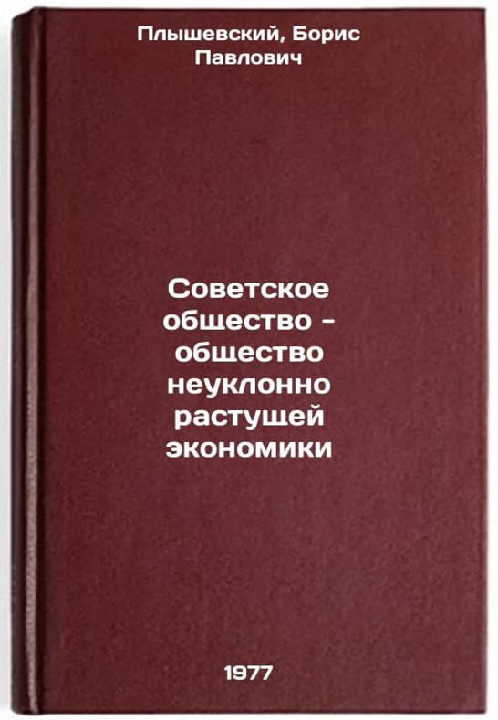 In Russian. Plyshevsky, Boris Pavlovich. Soviet society is a society of steadily growing economy. Moscow: Knowledge, 1977. Sovetskoe obshchestvo - obshchestvo neuklonno rastushchey ekonomiki. In Russian /Soviet society is a society of ever-growing economies . All images are for identification of editions only. Several books of the same edition may be available. Please feel free to request photos of available books. SKU7686997