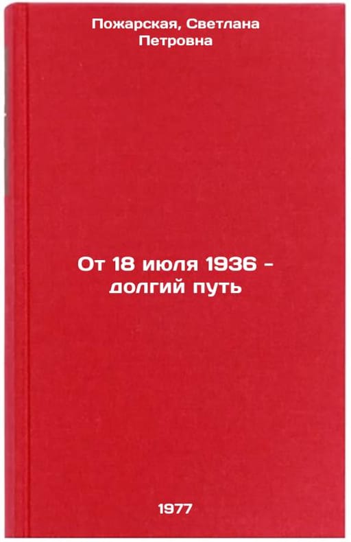 In Russian. Pozharskaya, Svetlana Petrovna. From 18 July 1936 - a long way. Moscow: The Moscow Guard, 1977. All images are for identification of editions only. Several books of the same edition may be available. Please feel free to request photos of available books. SKU7687447