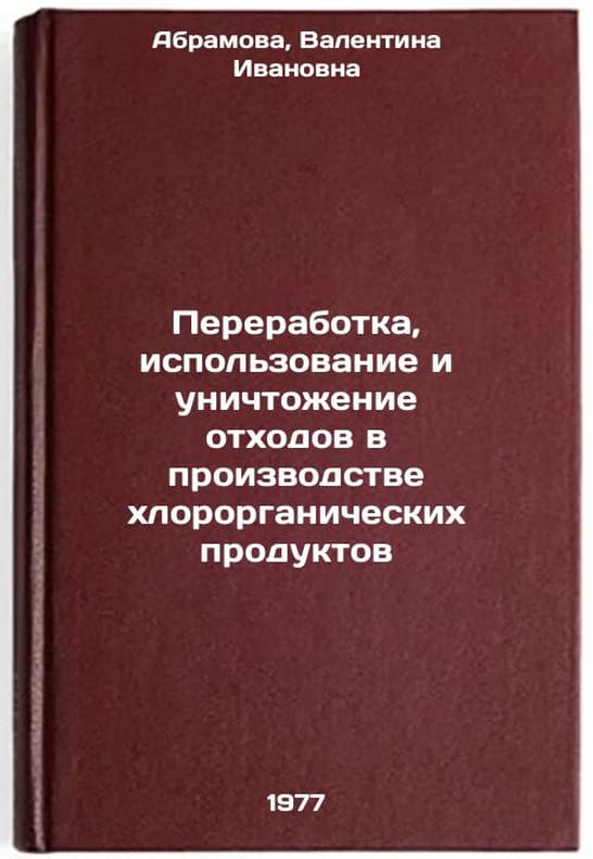 In Russian. Abramova, Valentina Ivanovna. Processing, Use, and Destruction of Waste in the Production of Organochlorine Products. Moscow: NIITEChem, 1977. Pererabotka, ispol'zovanie i unichtozhenie otkhodov v proizvodstve khlororganicheskikh produktov. In Russian /Processing, Use, and Destruction of Waste in the Production of Organochlorine Products . All images are for identification of editions only. Several books of the same edition may be available. Please feel free to request photos of available books. SKU7688108
