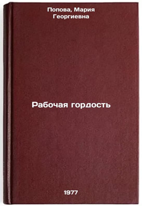 In Russian. Popova, Maria Georgievna. Working pride. Moscow: Profizdat, 1977. All images are for identification of editions only. Several books of the same edition may be available. Please feel free to request photos of available books. SKU7689906